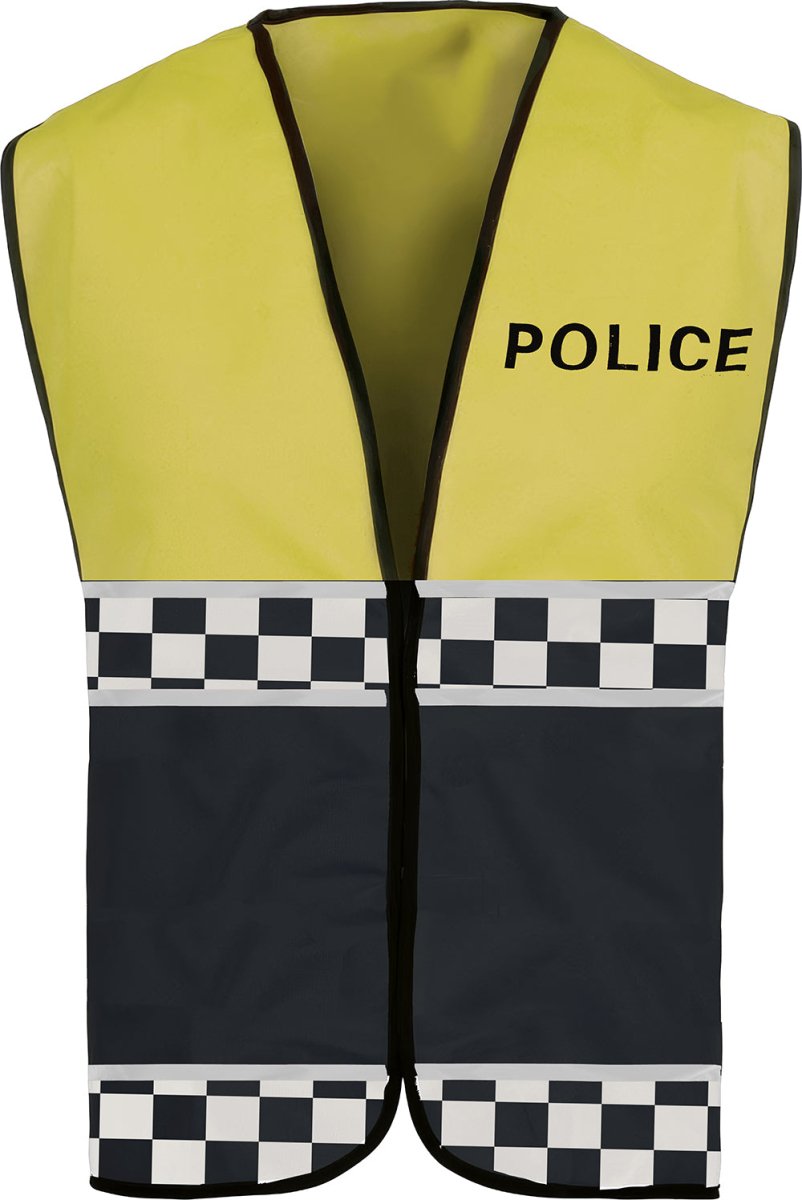 Denna gul-svarta polisväst är ett slående och igenkännligt tillbehör för karneval, maskerad och maskeradfester. Perfekt för att komplettera en polis- eller säkerhetsoutfit.