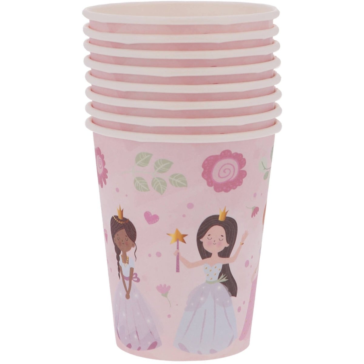 För läckra prinsessdrinkar. Muggar - Pretty Princess - 250ml - 8 stycken. Innehåll: 8 pappersmuggar. Kan t.ex. användas under följande kalas/festtillfällen: Barnkalas, Födelsedag, Temakalas. Mjuka rosa pappersmuggar med 4 förtrollande prinsessor. Dessa muggar tillhör kollektionen Pretty Princess från