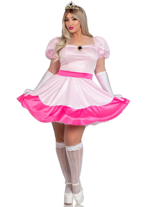 Hoppa in i världen av ditt favoritvideospel med Pink Princess Plus Size Costume av Leg Avenue! Denna ikoniska 4-delade ensemble innehåller en fantastisk rosa klänning, en juvelbrosch, en kunglig krona och eleganta handskar. Oavsett om du har ett soloäventyr eller bildar en dynamisk duo med en Mario-dräkt, är den här förtrollande kostymen perfekt för alla uppdrag! 🏁💖