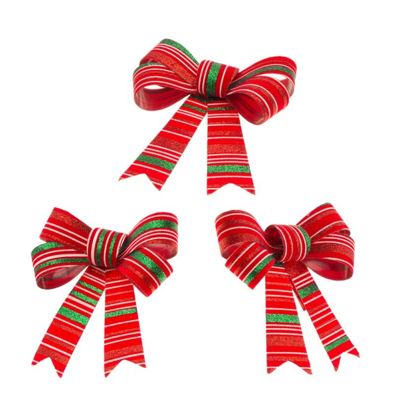 Röd grön rosett randig 13cm