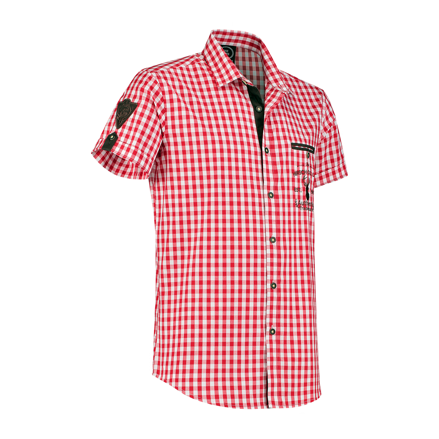 Röd Vit Blus Herr Kortärmad Traditionell Rutig