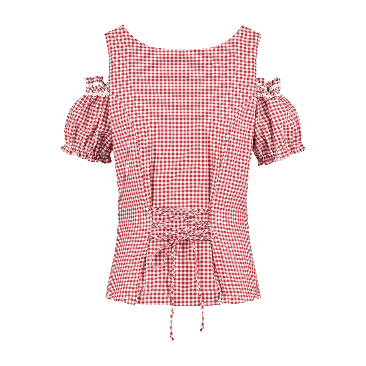 Röd vit blus dam rutig med spännen