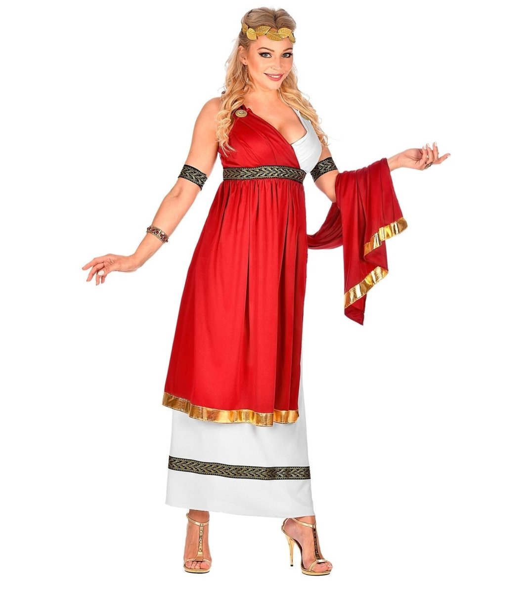 Beskrivning: Romersk kejsarinnaklänning med draperingar, armringar, lagerkrans