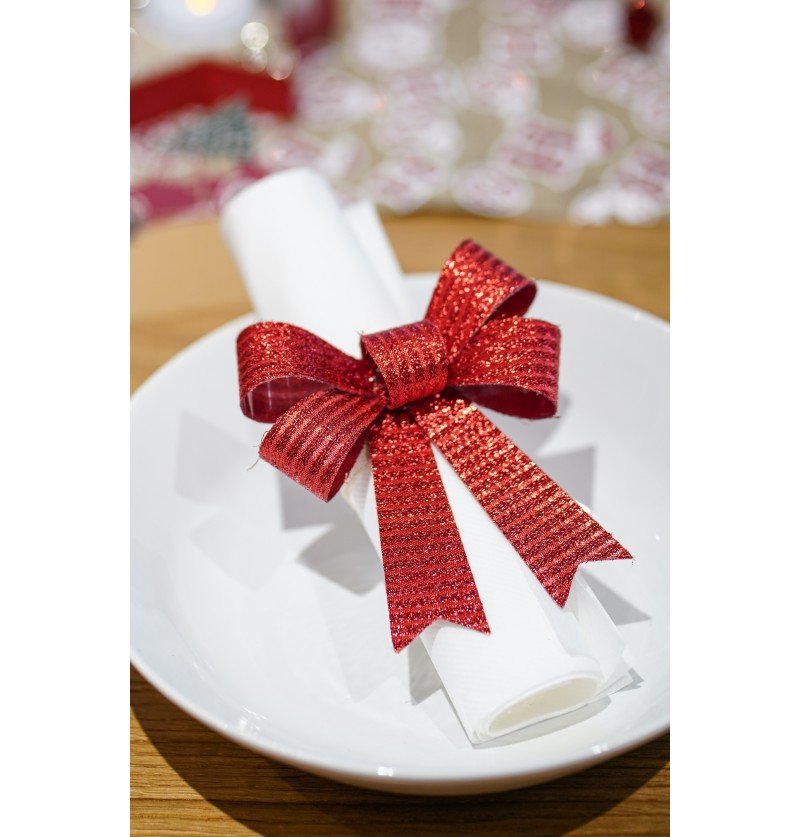 Röd rosett glitterränder 10cm 3st