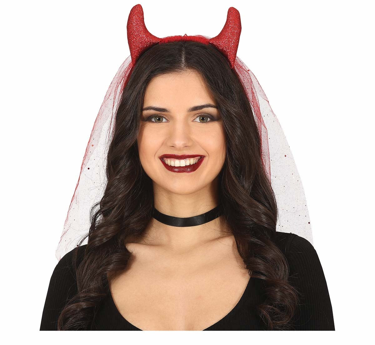 Rött hårband Djävul med slöja