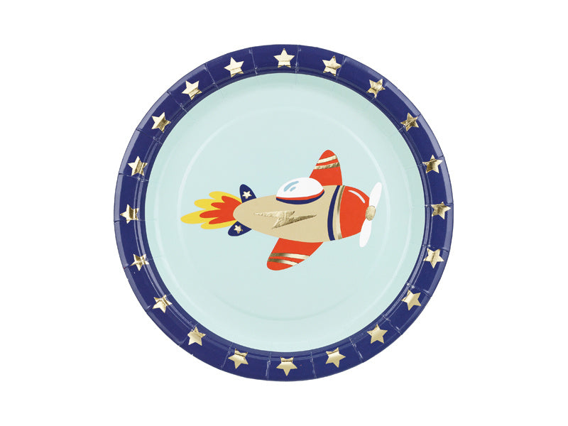 Papperstallrikar Flygplan, färgmix, storlek ca 18 x 18 cm. (1 pkt/6 stycken)