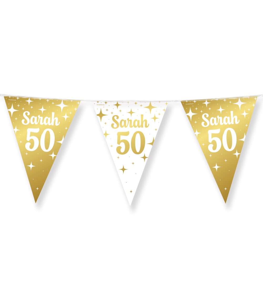 Fancy Party Flags foil - Sarah 50 kan kombineras perfekt med våra matchande ballonger och med andra partyprodukter från vårt breda sortiment, så att du enkelt kan skapa en festlig och elegant atmosfär.