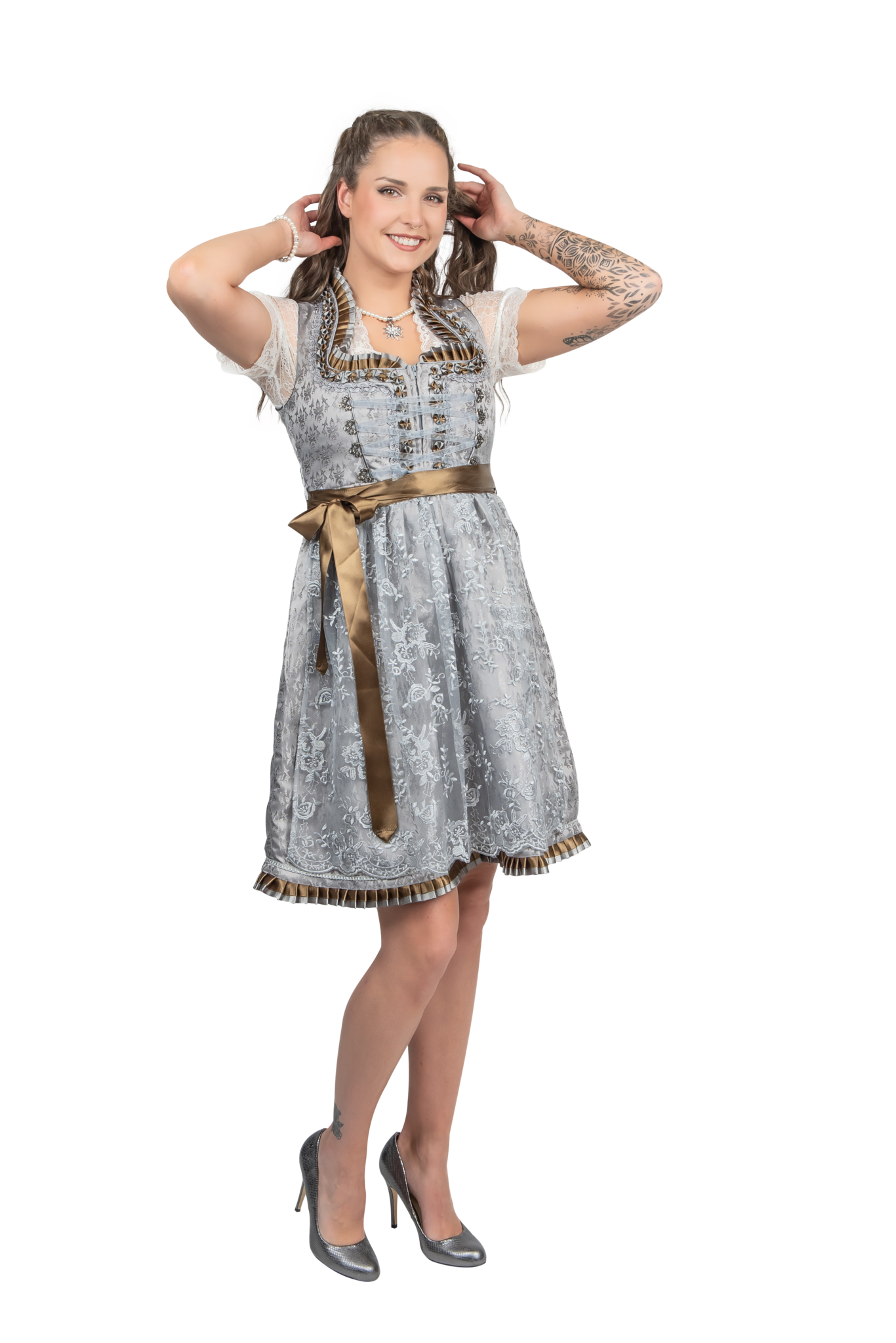 Silver Dirndl Klänning Oktoberfest Kvinnor 2 delar