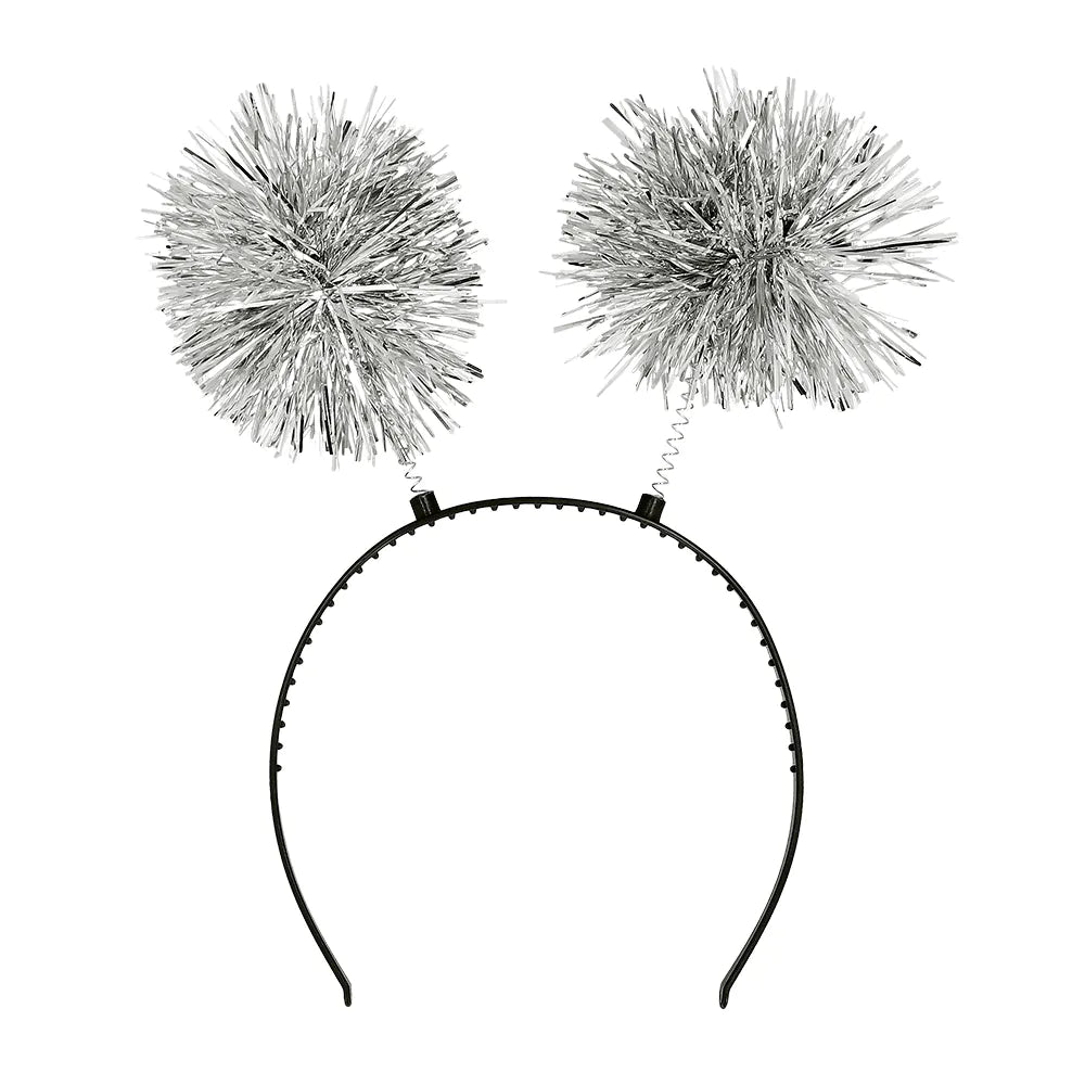 Lägg till en gnistrande touch till alla festkläder med detta roliga diadem med pompoms i silver. De rörliga pompongerna ser ut som fyrverkerier, vilket gör diademet till den perfekta accessoaren för en häftig nyårsfest!