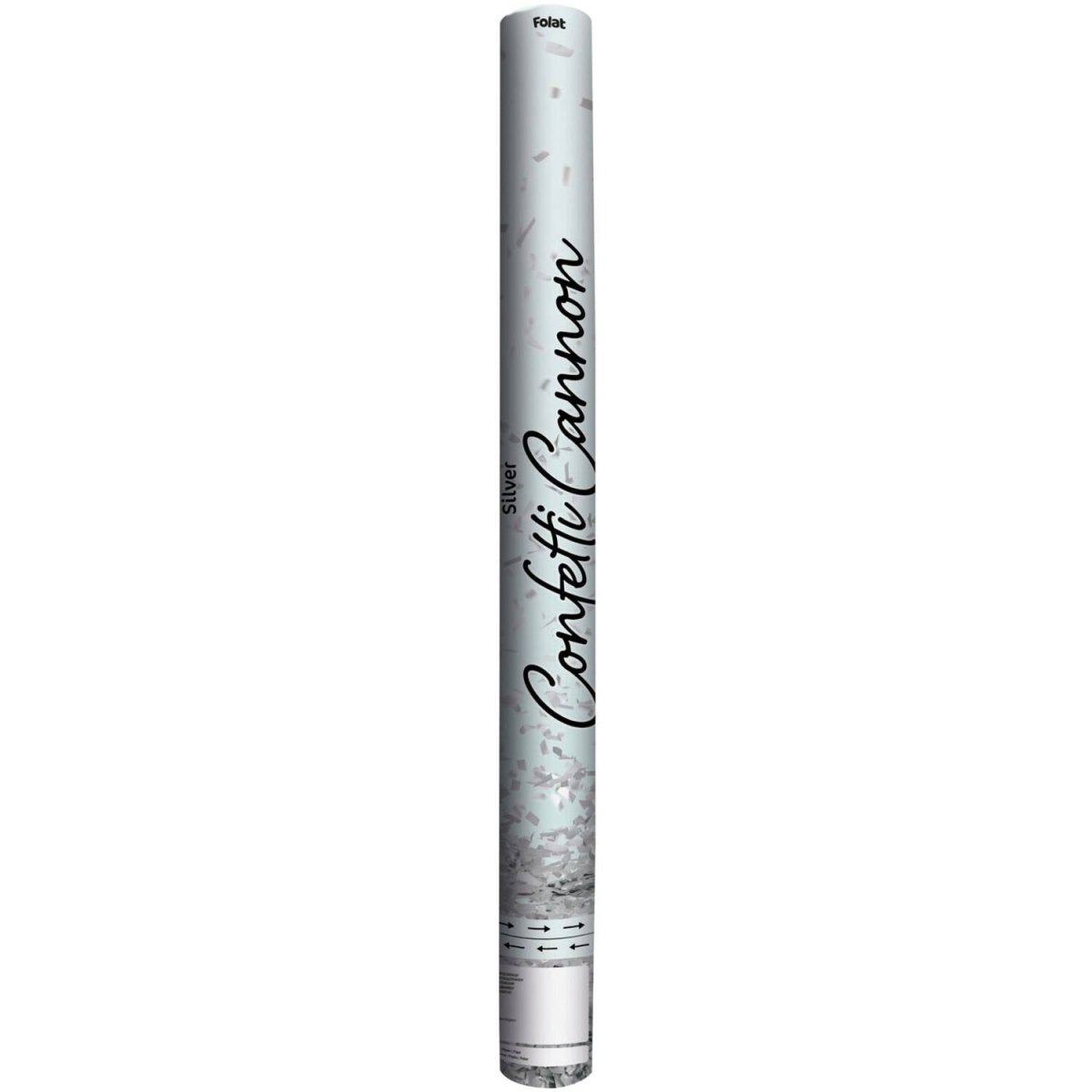 Konfetti Kanon Silver XL - 57cm. Innehåll: 1 konfettikanon. Färg: Silver. Används t.ex. vid följande fest-/partytillfällen: födelsedag, barnkalas och jubileum. Artikeln är 57 cm lång. Artikeln är tillverkad av papper.