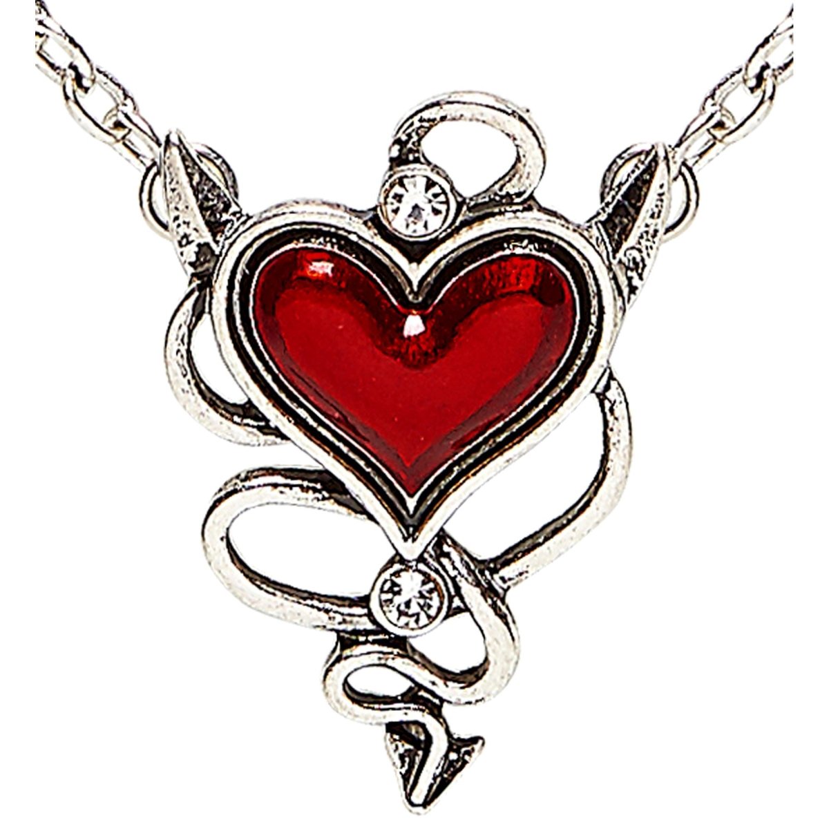 Silverhalsband med röda djävulshjärtan
