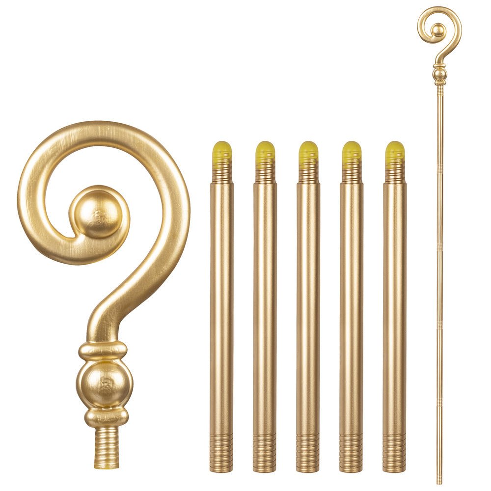 Komplettera en Sinterklaas-dräkt med denna vackra Sinterklaas-stav i 6 delar. Staven är tillverkad av plast och är lätt att montera genom att alla 6 delarna vrids ihop. När den är monterad har staven en längd på 185 cm. Perfekt som ett tillägg för alla som ska spela Sinterklaas under inträdet, julafton eller andra Sinterklaas-firanden.