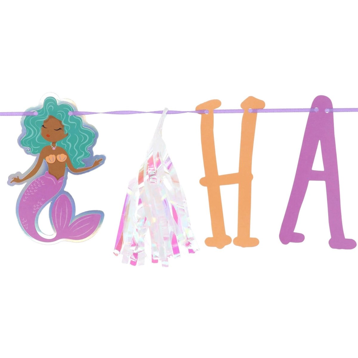 För varje sjöjungfru som fyller år! Bokstavsgirlangset - Mermaid Magic - 1,5 meter. Innehåll: 1 bokstavsgirlang i 2 delar. Kan t.ex. användas under följande fest/festtillfällen: Barnkalas, Födelsedag. Nu blir det riktigt magiskt! Denna girlang består av två delar: en girlang med texten "HAPPY BIRTHDAY" (bokstäverna är ca 14 cm höga) med en sjöjungfru och en iriserande folietofs på vardera sida, mellan de två orden finns också en sjöjungfru. På den andra kransen hänger texten "MERMAID MAGIC" (bokstäverna är ca 14 cm höga) med en iriserande snäcka och en iriserande folietofs på vardera sidan. Tack vare den använda varmstämplingstekniken glittrar de iriserande snäckorna verkligen! Bokstäverna och snäckorna är tryckta på båda sidor. Alla delar kan skjutas fram och tillbaka över det lila bandet. Banden på båda girlangerna är 2,5 meter lang.Deze flagline tillhör Mermaid Magic-kollektionen av Folat. Det här föremålet är tillverkat av papper.
