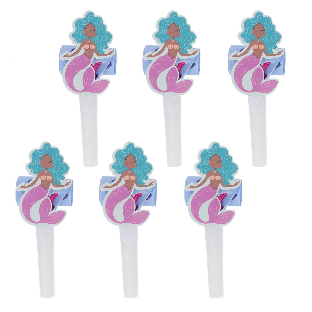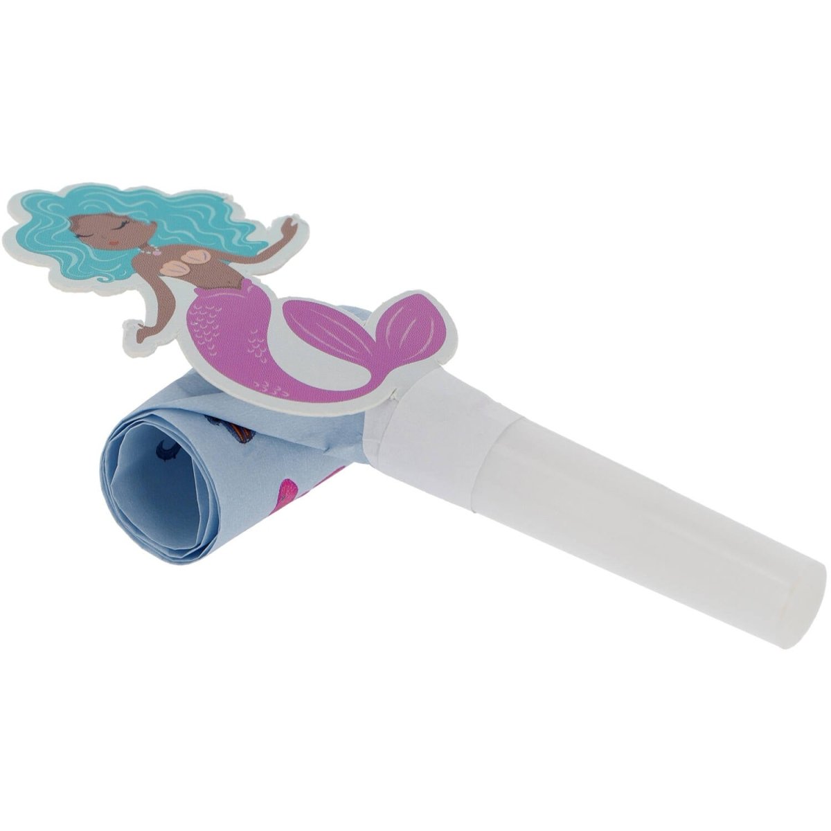 Sjöjungfrur älskar också horn. Rulltungor - Mermaid Magic - 6 stycken. Innehåll: 6 rulltungor. Kan t.ex. användas under följande kalas/festtillfällen: Barnkalas, Födelsedag, Temafest. Dessa 6 magiska rulltungor är ljuslila/blå och har ett dubbelsidigt tryck med havets skatter. De har en sjöjungfru i kartong som extra dekoration. Utrullade är de rullande tungorna ca 28 cm. Munstycket är av plast, vitt och 5 cm långt. Rulldelen är 4 cm bred och 23 cm lång (utrullad). Orullade är de rullande tungorna ca 11 cm. Denna artikel är tillverkad av papper.