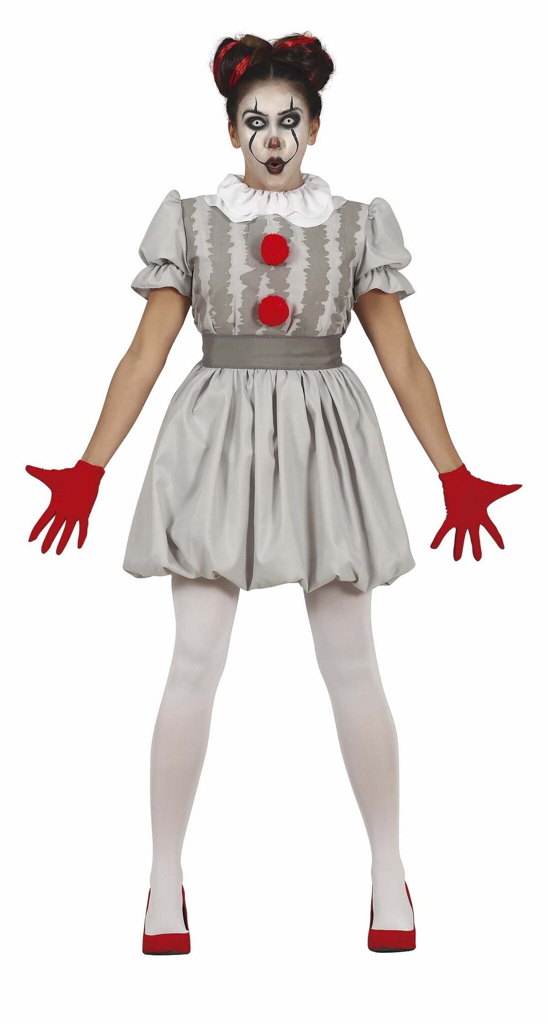 Skräck Clown Halloween Kostym Dam Grå