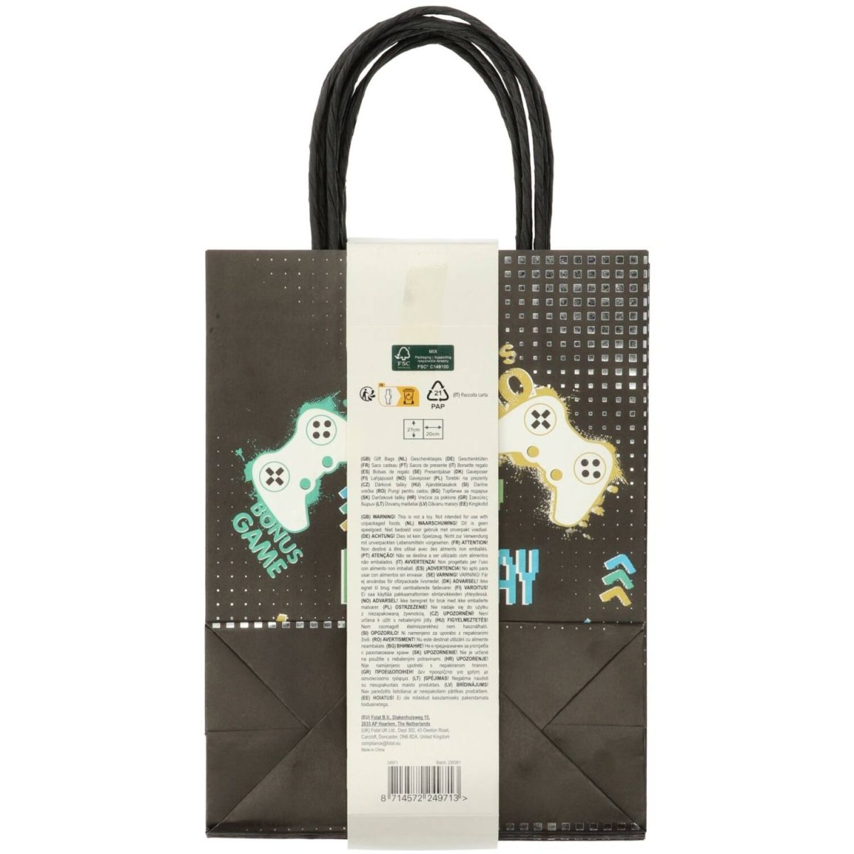 För bonuspoäng! Presentpåsar - Level Up - 20 x 27 cm - 6 st. Innehåll: 6 presentpåsar. Kan t.ex. användas vid följande kalas/festtillfällen: Födelsedag, Barnkalas, Tonårskalas. Fina att lägga presenter i till födelsedagsspelare och fina som give-away i slutet av ett spelkalas. På ena sidan av påsen står det "Happy Birthday" och några speltermer. På den andra sidan står det "Level Up". Påsen är 20 cm bred, 27 cm hög (exklusive handtag), ca 38 cm (inklusive handtag) och 10 cm djup. Dessa presentpåsar tillhör vår Level Up-kollektion. En cool kollektion med silvriga accenter som låter dig fira ett riktigt gamingparty. Tillverkad av en gamer för gamers. Nu kör vi! Denna artikel är tillverkad av FSC-papper.