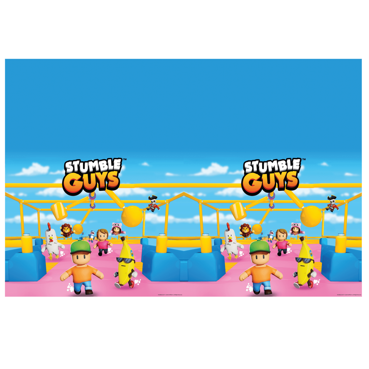 Ge kalasbordet ett glatt utseende med den här Stumble Guys-duken. Perfekt för barnkalas, födelsedagar och temafester.