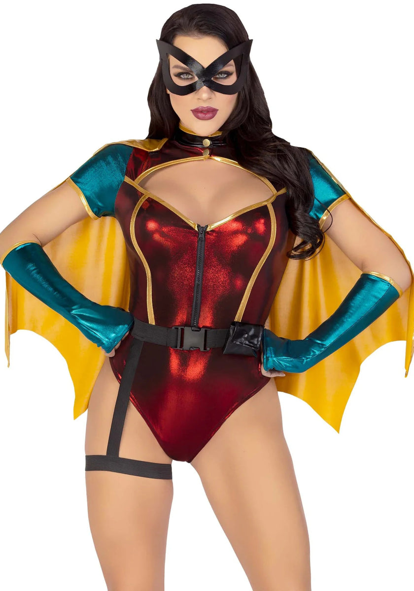 Gör dig redo att släppa loss din inre superhjälte med denna coola 5-delade Robin-dräkt! Denna dynamiska ensemble innehåller en skimrande body med dragkedja, en avtagbar cape, ett bälte med hängslen, matchande handskar och en mystisk ögonmask. Kliv in i rollen som Robin och skydda staden med stil och självförtroende. Perfekt för temafester, karnevaler och episka superhjälteäventyr! 💥✨