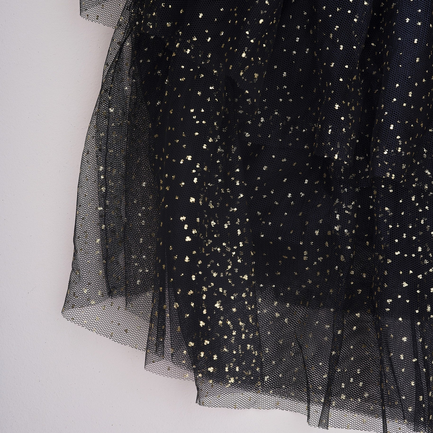 Den här tutun är tillverkad av svart tyll med guldspräckliga detaljer.