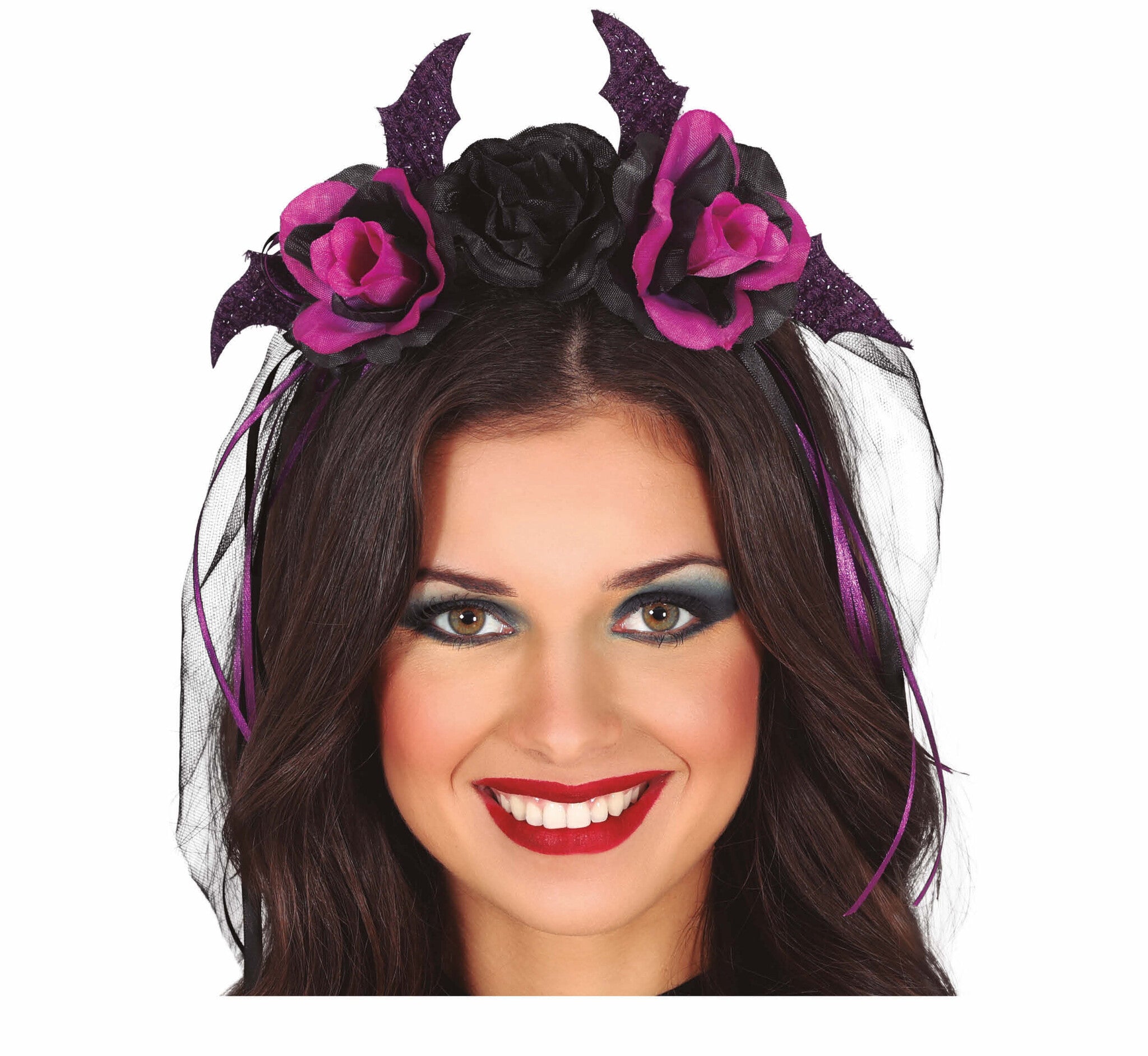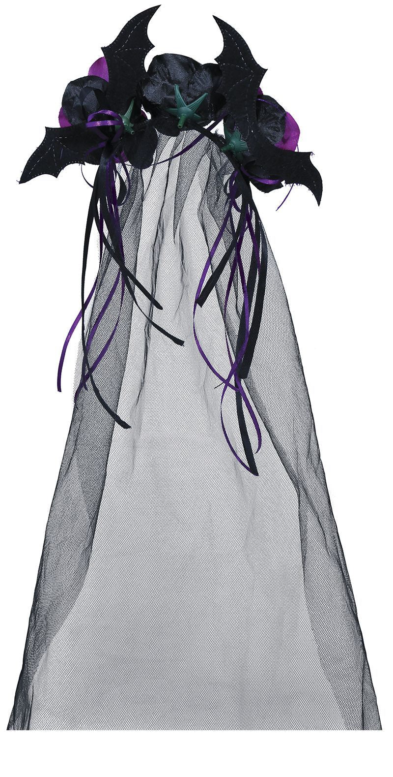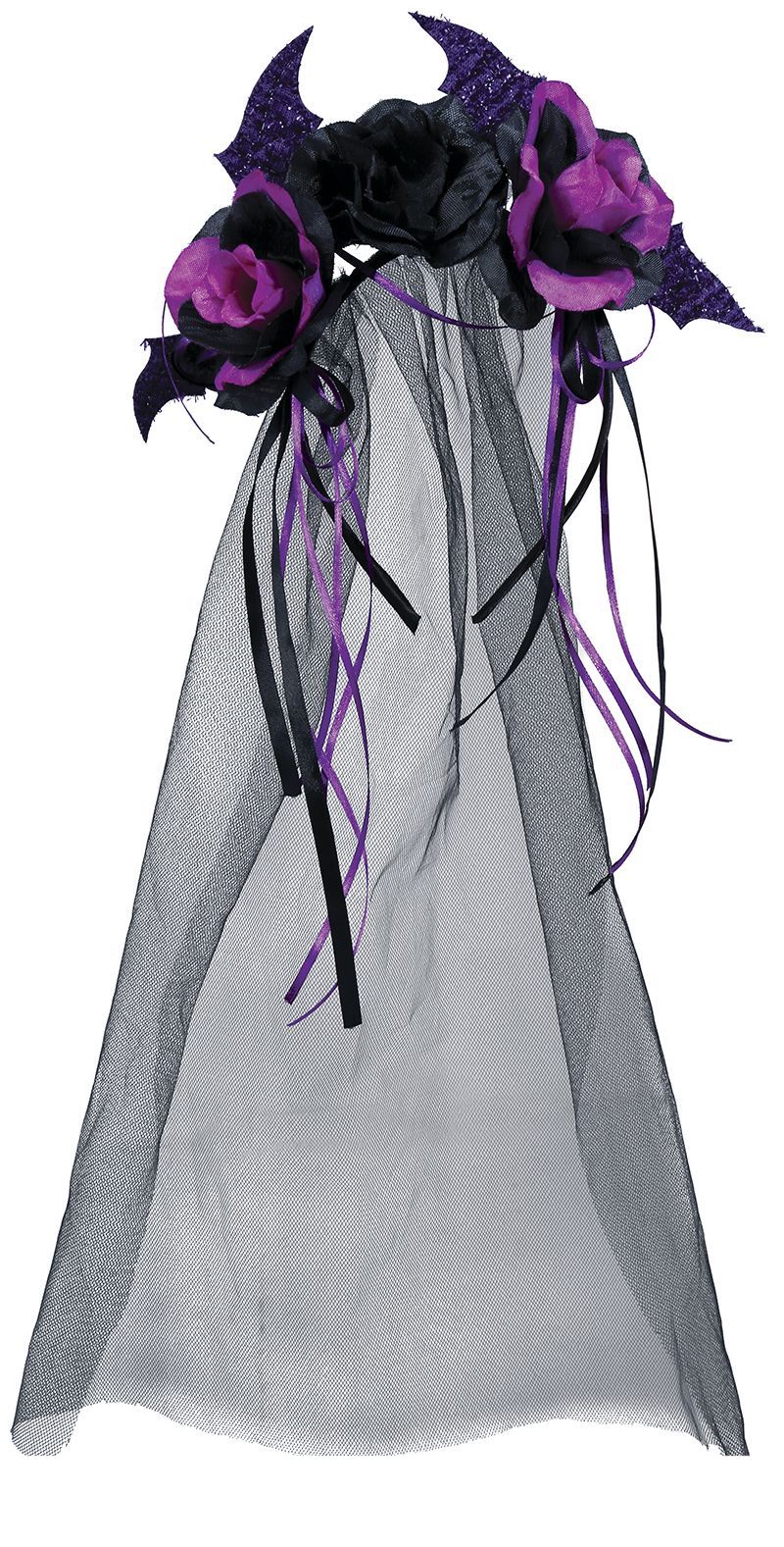 Svart Halloween hårband Lila blommor och slöja