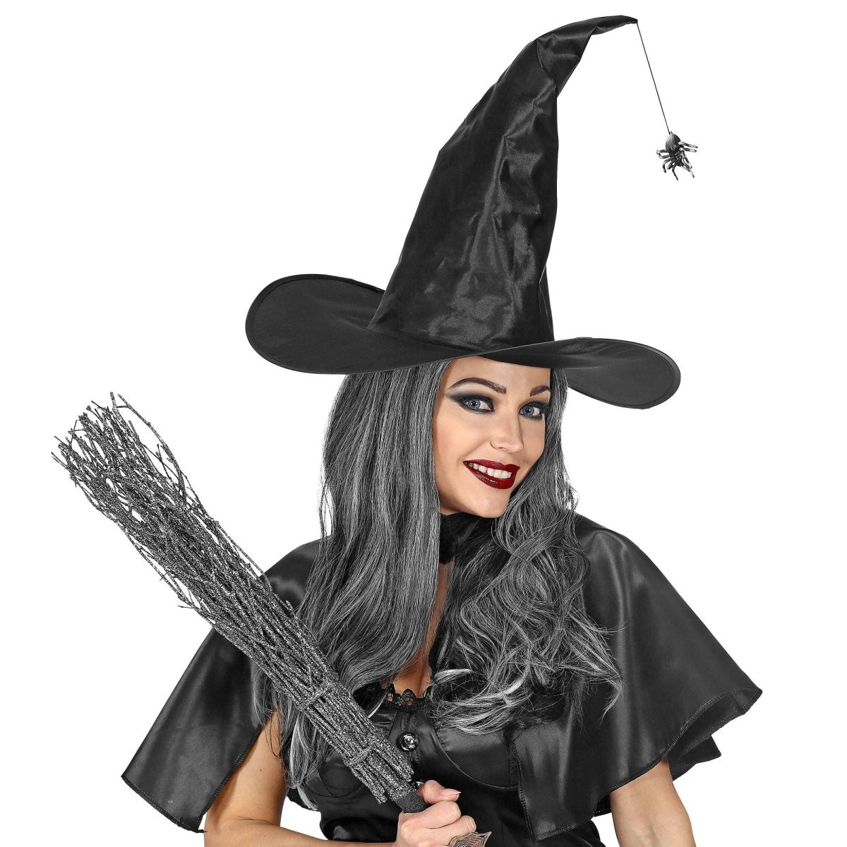 Svart häxhatt med spindel