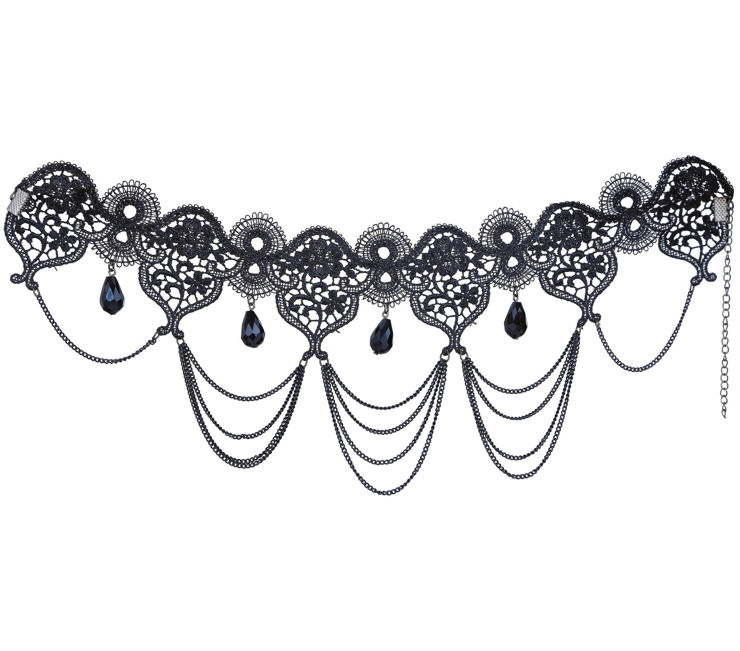 Svart halsband spets och stenar