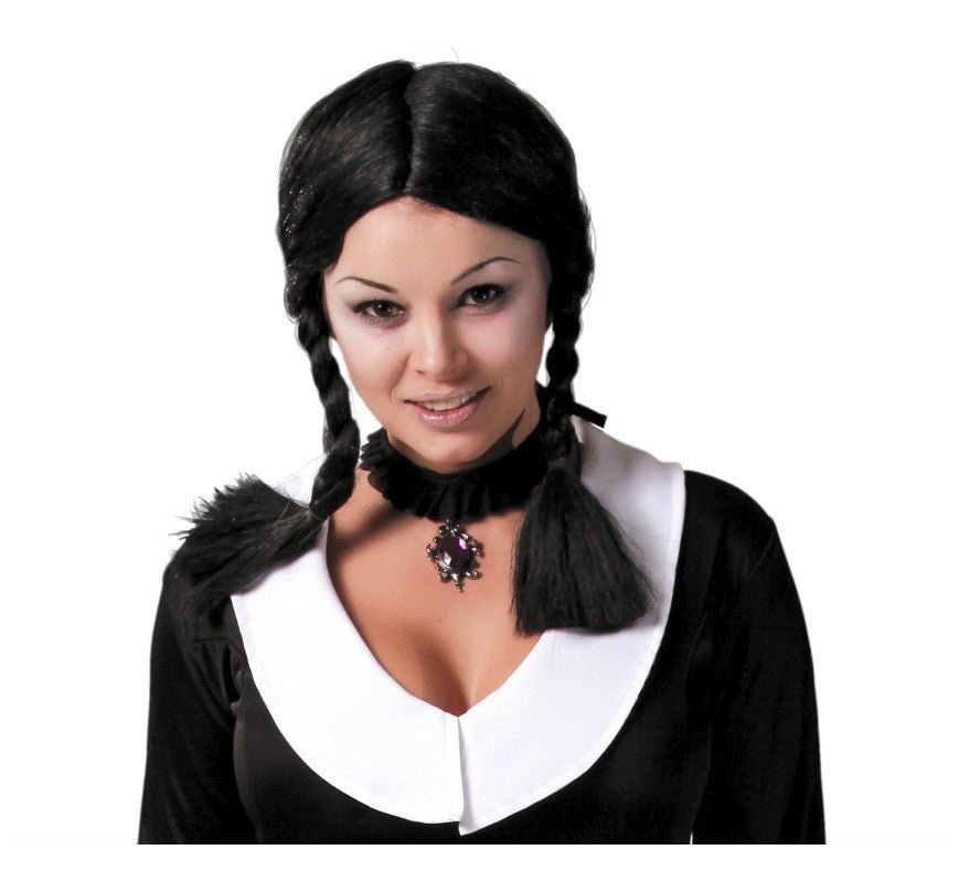 Svart peruk med flätor
