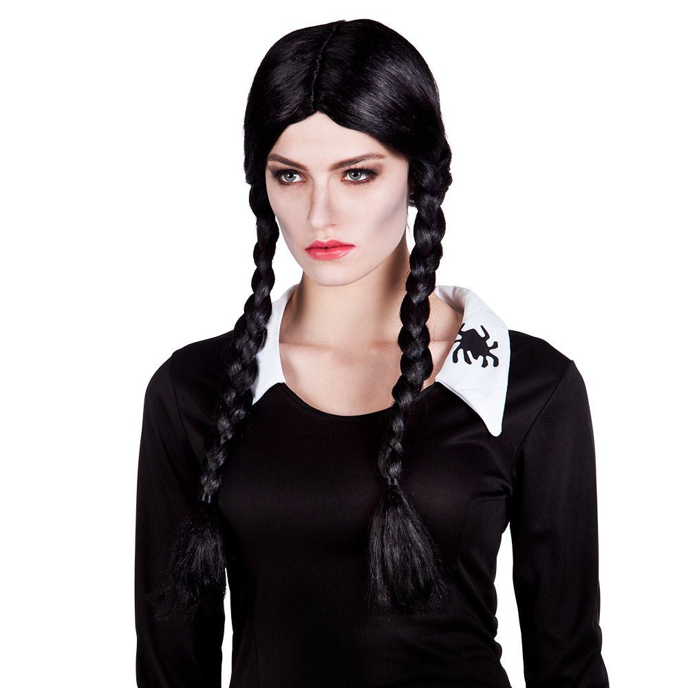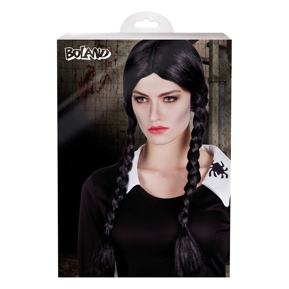 Svart peruk med flätor lång