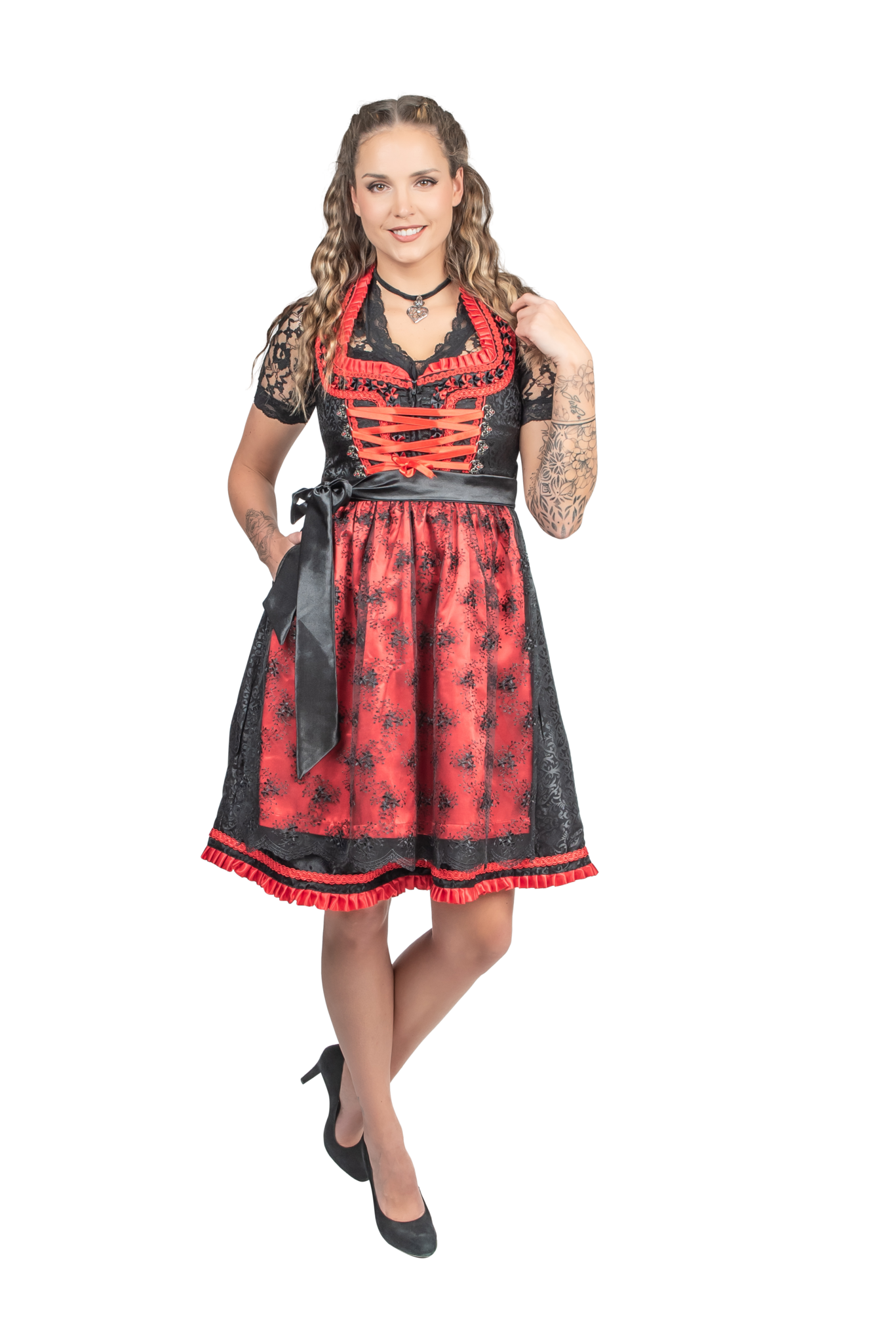 Svart Röd Dirndlklänning Oktoberfest Ladies 2 delar