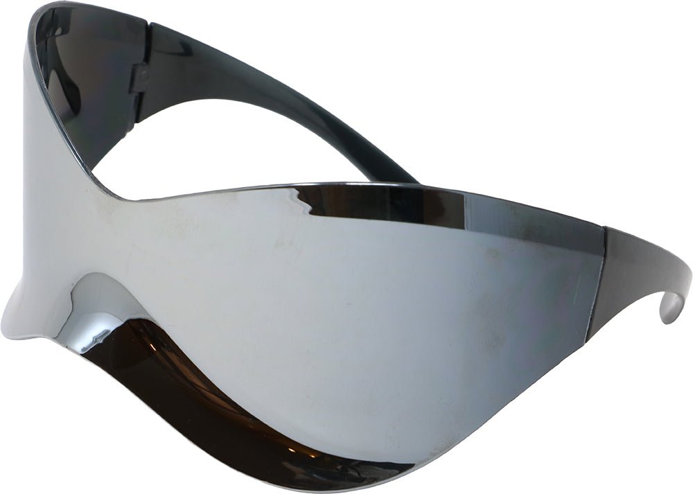 Ge din look en modern och djärv look med de här futuristiska spegelsolglasögonen. Den svarta ramen med silverspegeleffekt gör dessa glasögon idealiska för fester, festivaler eller slående street style.