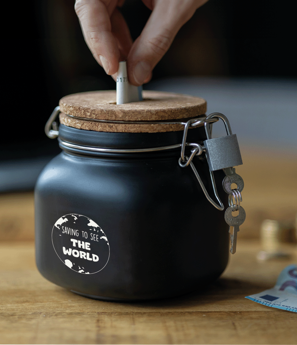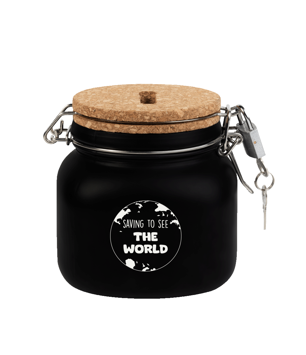 Svart sparbössa Spara för att se världen 12,5cm