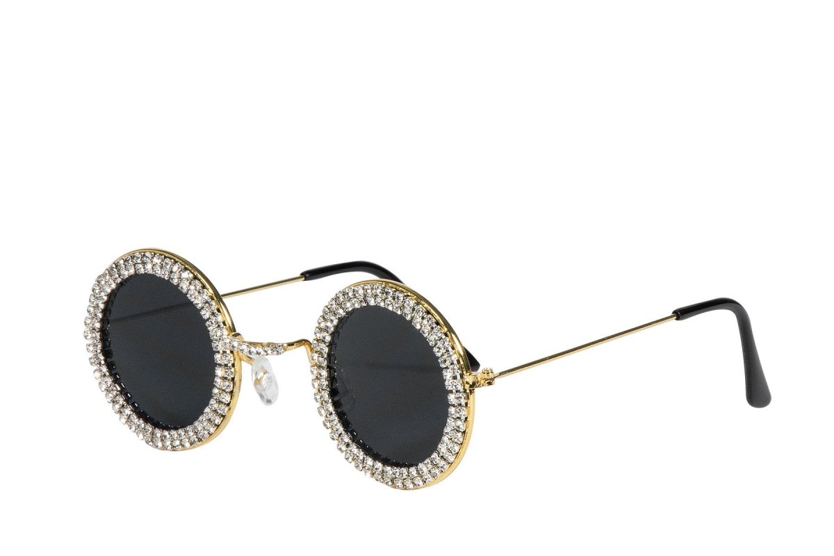 Svarta Silverglasögon Runda Med Stenar