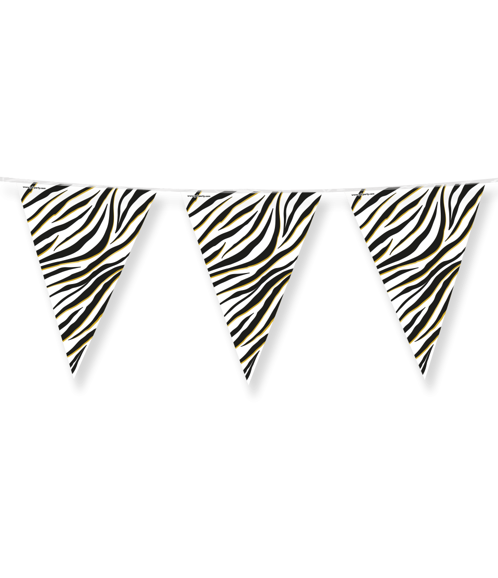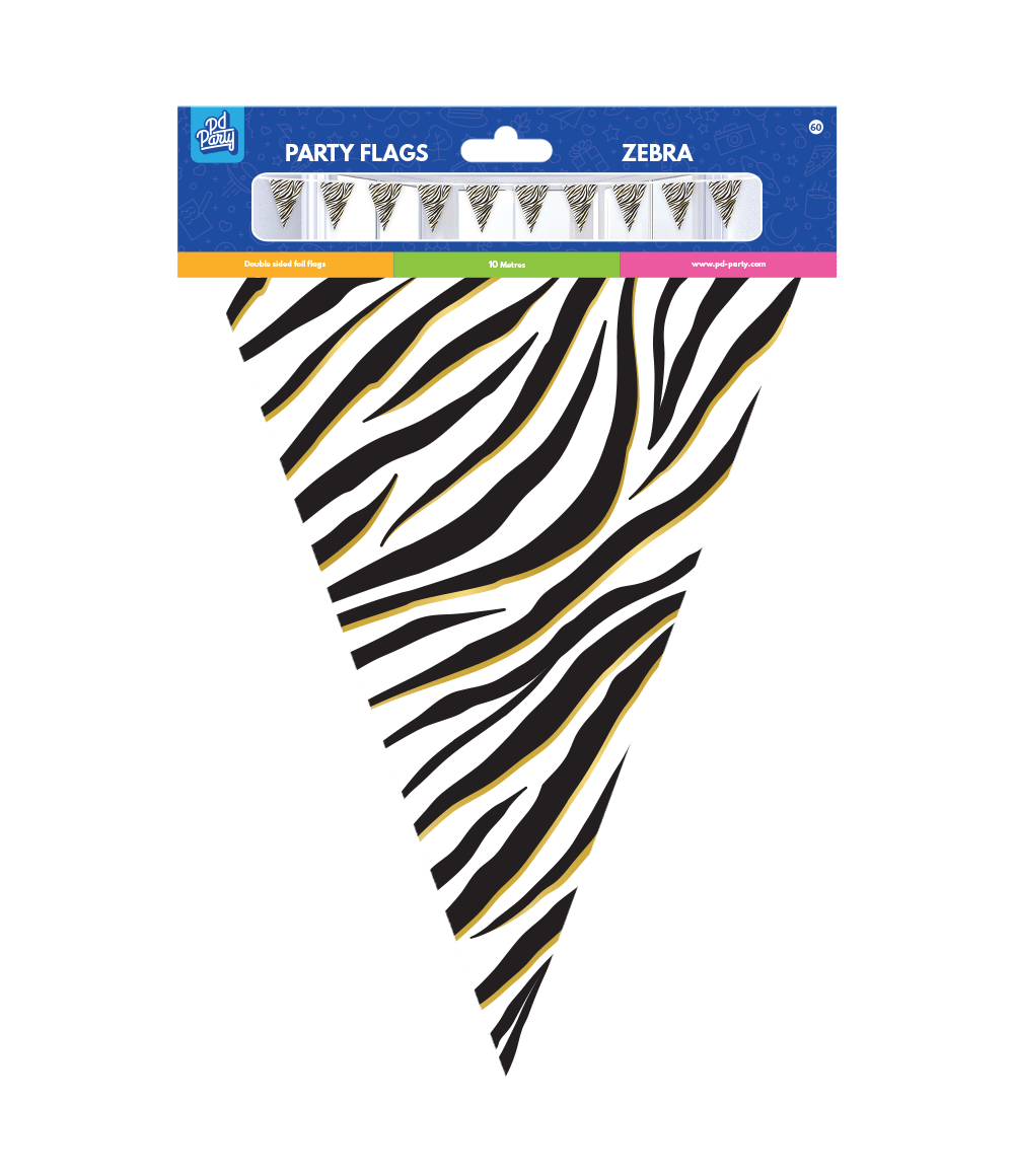 Inget kalas utan flaggor och när du köper dessa partyflaggor folie Zebra får du direkt en flagglinje med ett unikt tema! Flaggorna är tillverkade av folie och flagglinjen är 10 meter lång.