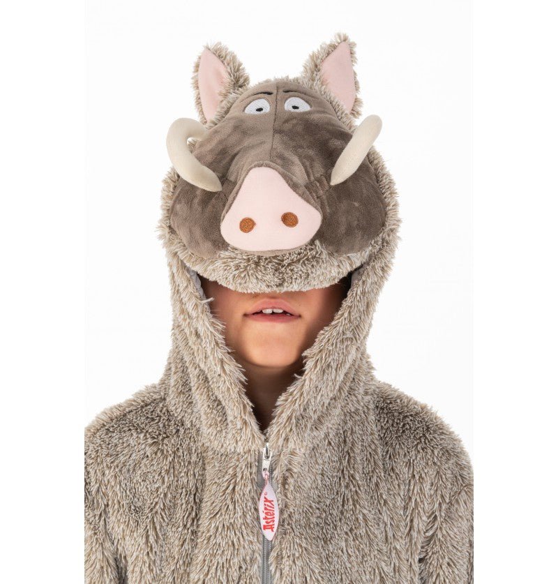 Wild Boar OnesieVildsvinsdräkt från Asterix och Obelix Gallier, Obelix favorit, inklusive en hel plyschdräkt med vildsvinshuvud.