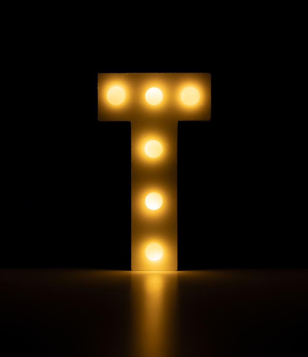 De ljusa bokstäverna gör att du kan skapa dina egna ord och meningar på stämningsfulla sätt. Ett batteri ingår.