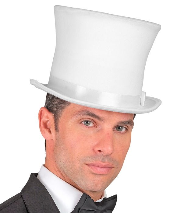 Fullända din outfit med denna klassiska vita höga hatt. Perfekt för maskeradfester, karnevaler, shower, maskeradfester eller eleganta kostymer.