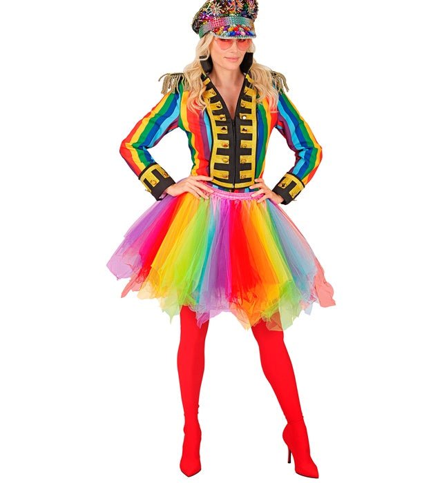 Den här regnbågstutun skapar omedelbart en glad och iögonfallande look och är perfekt för festliga och färgglada tillfällen.