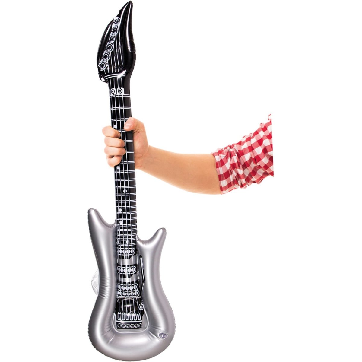 Komplettera din egen rockfest med denna uppblåsbara elgitarr. Innehåll: 1 uppblåsbar artikel. Inga musiklektioner behövs för att spela på detta instrument. Denna uppblåsbara gitarr är 100 cm. Artikeln är tillverkad av plast.