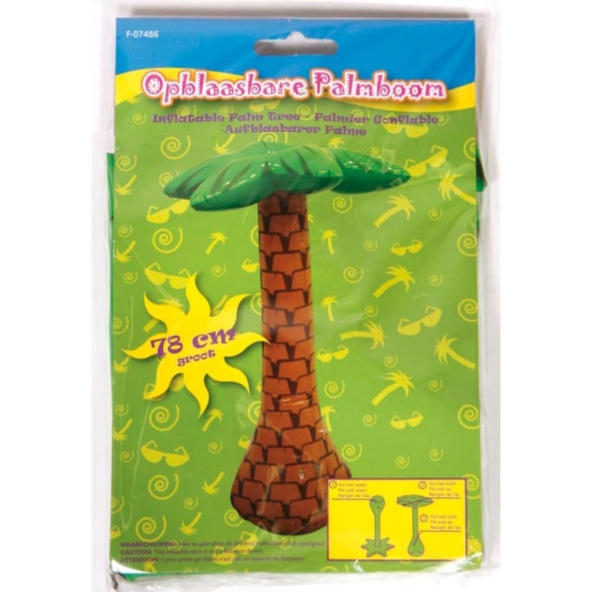 Förvandla din fest till ett tropiskt paradis med denna uppblåsbara palm. Innehåll: 1 uppblåsbar artikel. Palmens botten kan fyllas med vatten eller sand för ökad stabilitet. Palmträdet är 65 cm högt. Artikeln är tillverkad av plast.
