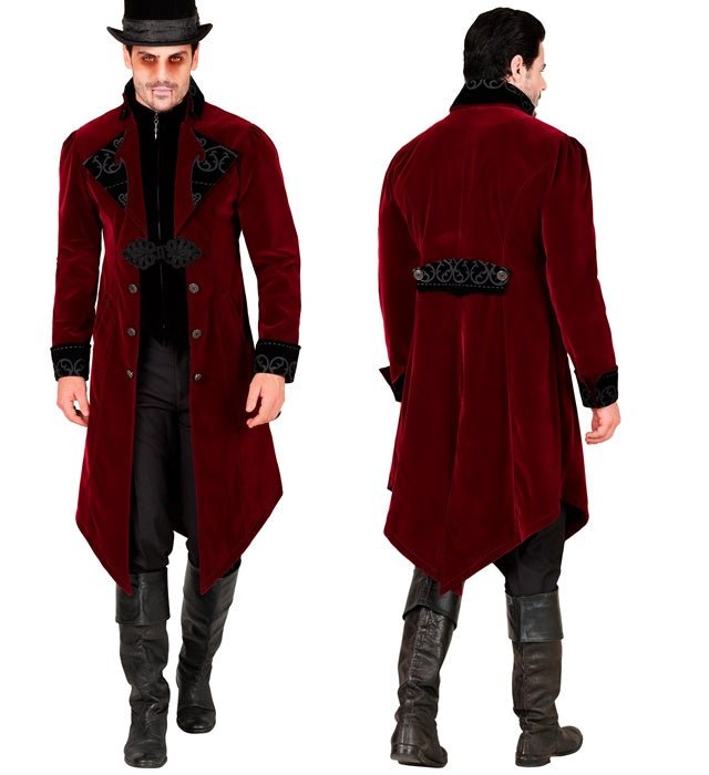Med denna vinröda sammet Gothic jacka för män skapar du omedelbart en elegant, mystisk och iögonfallande look.