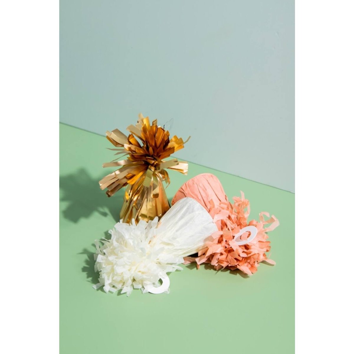Låt ballonger fyllda med helium inte flyga iväg utan sväva i luften. Används t.ex. under följande fest/festtillfällen: Födelsedag, Barnkalas, Jubileum. Denna ballongvikt är inslagen i papper och har fransar upptill. Den matchar perfekt med vår kollektion av folieballonger (former och siffror) med ultramatt finish.