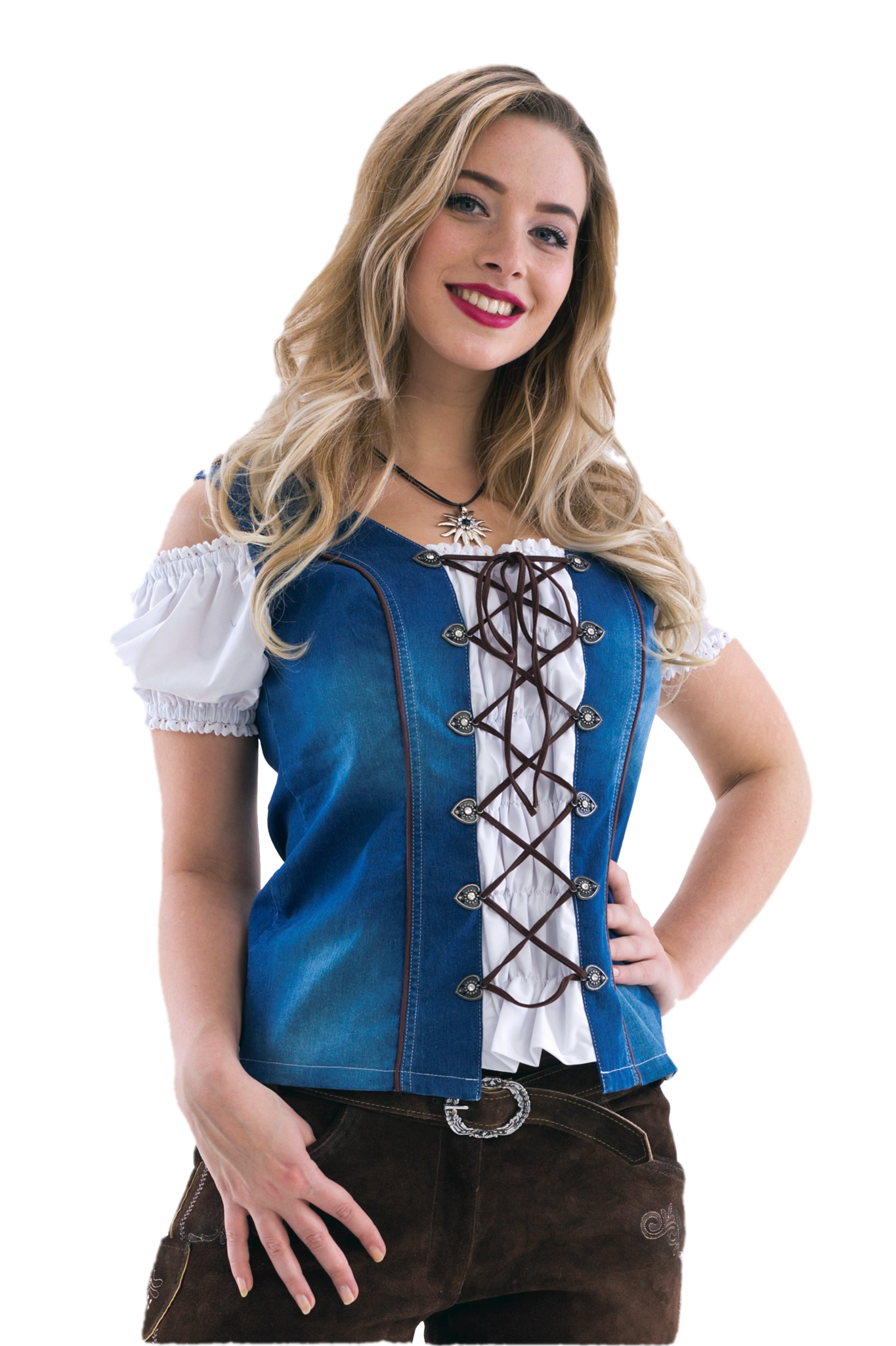 Vit Blå Blus Ladies Trachtenmieder