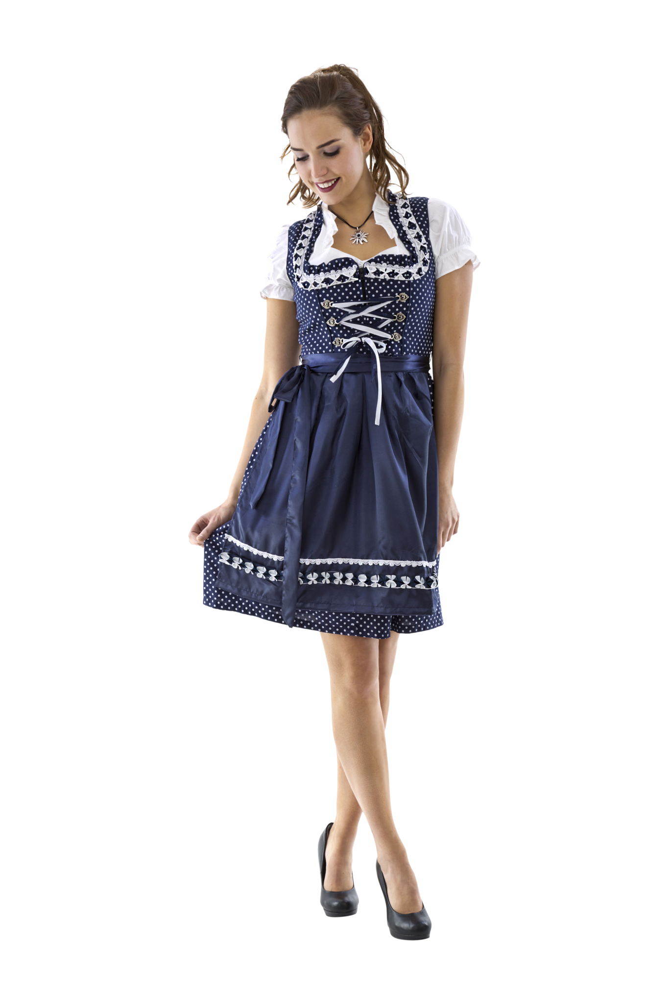 Vit Blå Dirndl Klänning Oktoberfest Damer