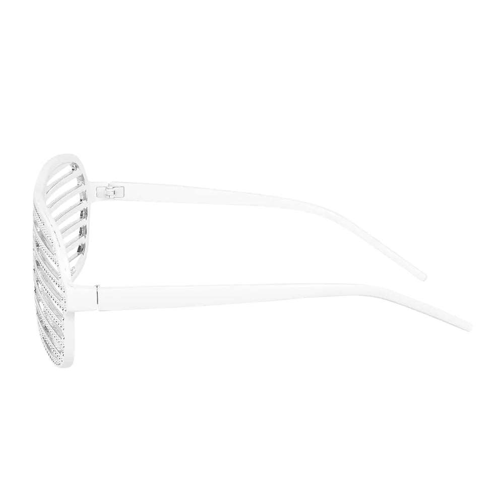 Dessa coola shutter partyglasögon är perfekta för att ge lite glamour till en rolig retro 90-talsoutfit för karneval, en misstagsfest eller maskerad. De vita lamellglasögonen är dekorerade med glitterstenar. Mycket trevliga för festivalbesökare, festprissar och 90-talsfanatiker.