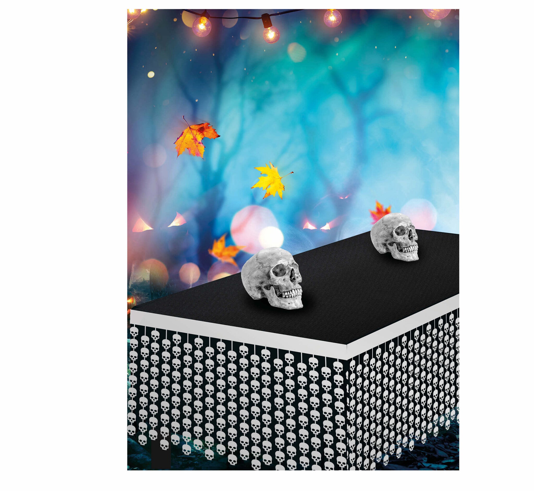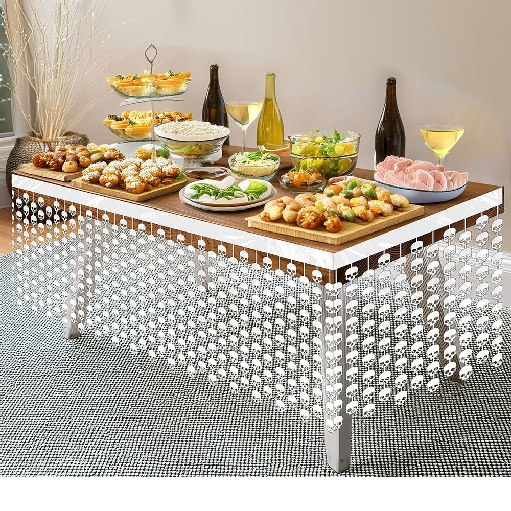 Vit Halloween bordskjol Dödskallar 4m