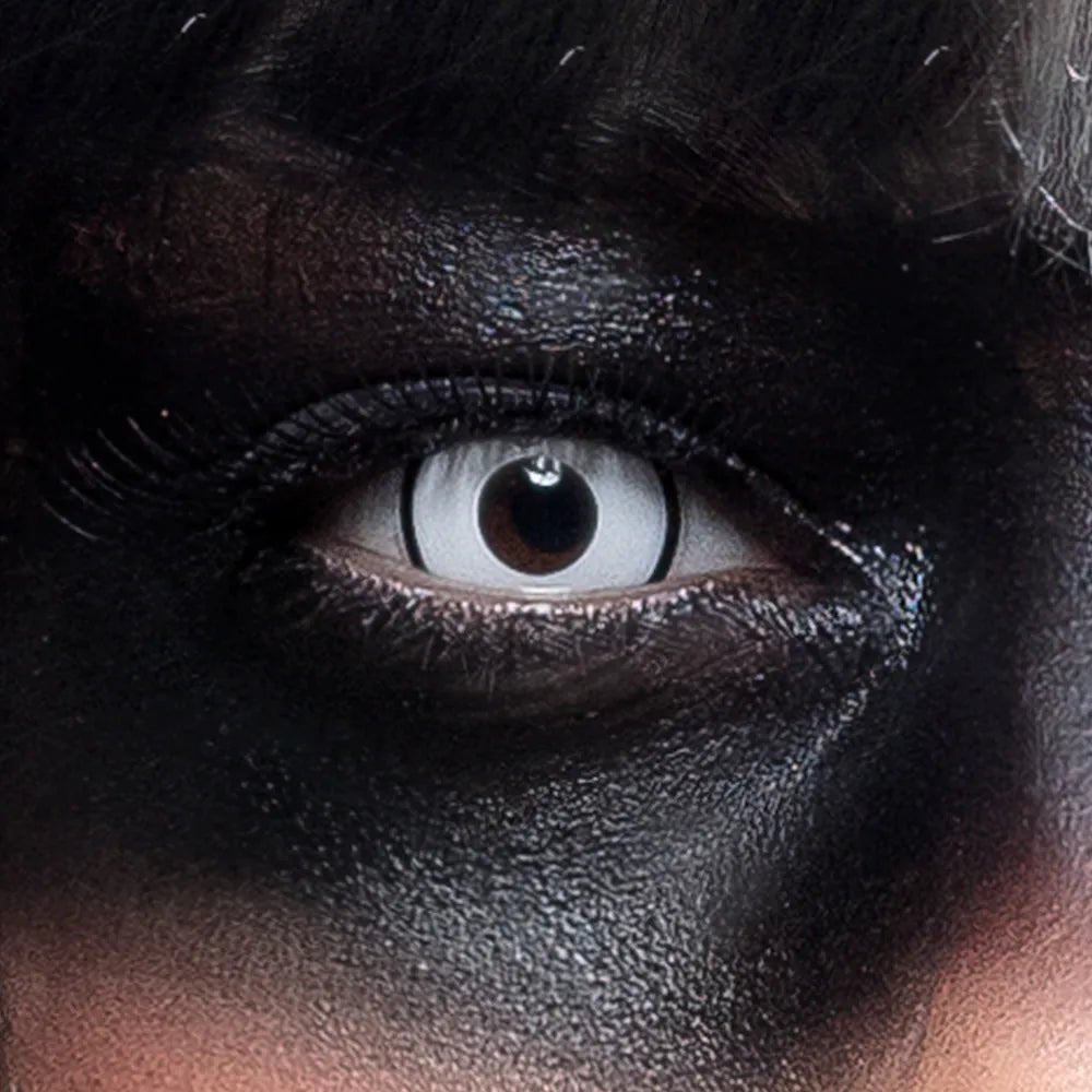 Dessa vita linser har en svart kant som ger en extra genomträngande look. Detta gör dem perfekta för en läskig demonkostym på Halloween. Dessa mjuka veckolinser är receptfria.